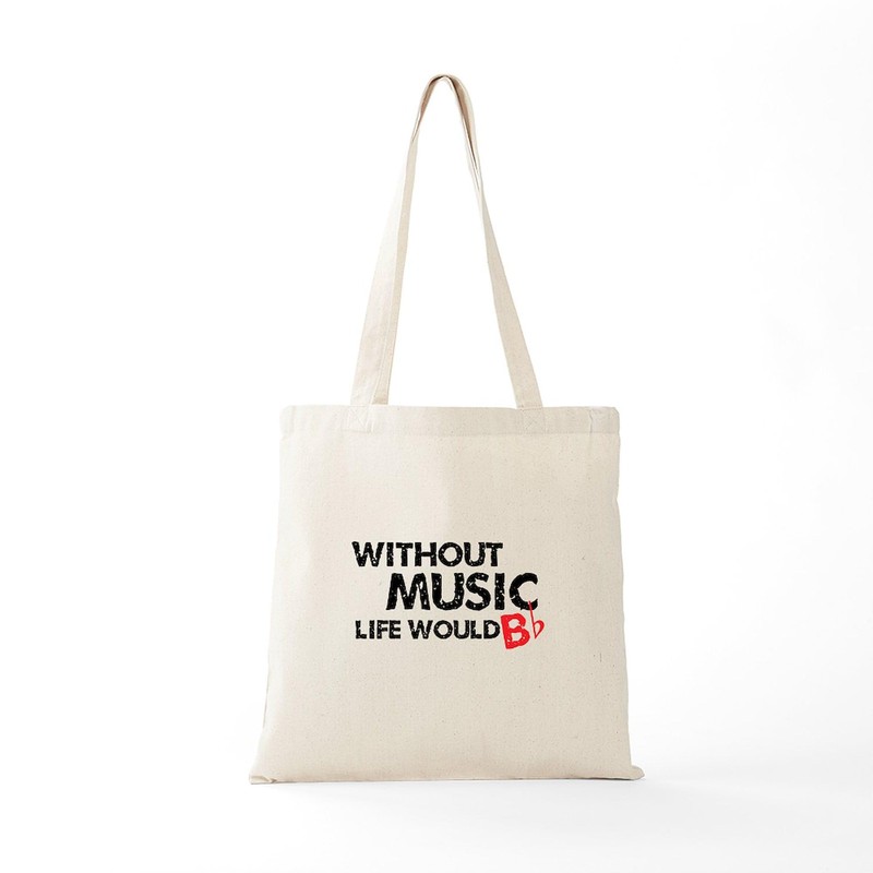 CafePress Without Music Life Would B Flat Tote Bag Reusable Natural Beige Canvas Shopping Bag
