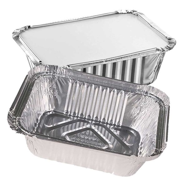 CafeTEq Aluminium Foil Food Trays (No 2) Containers Including Lids Perfect for Storage Freezing Roasting BBQ Meal Prep Takeaway (20)