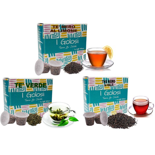 The pack contains 120 capsules. 40 Ceylon black tea capsules, 40 green tea capsules and 40 Ceylon black tea capsules with lemon peel. Pack of 12 sealed bags of 10 units each. NATURAL INGREDIENTS: Ceylon black tea, green tea, lemon zest. Made in Italy. Balanced taste: hot infusion, ideal for enjoying breakfast or in the afternoon. To fully enjoy the properties of the tea, we recommend a dosage of 80÷100 ml.