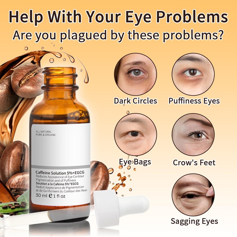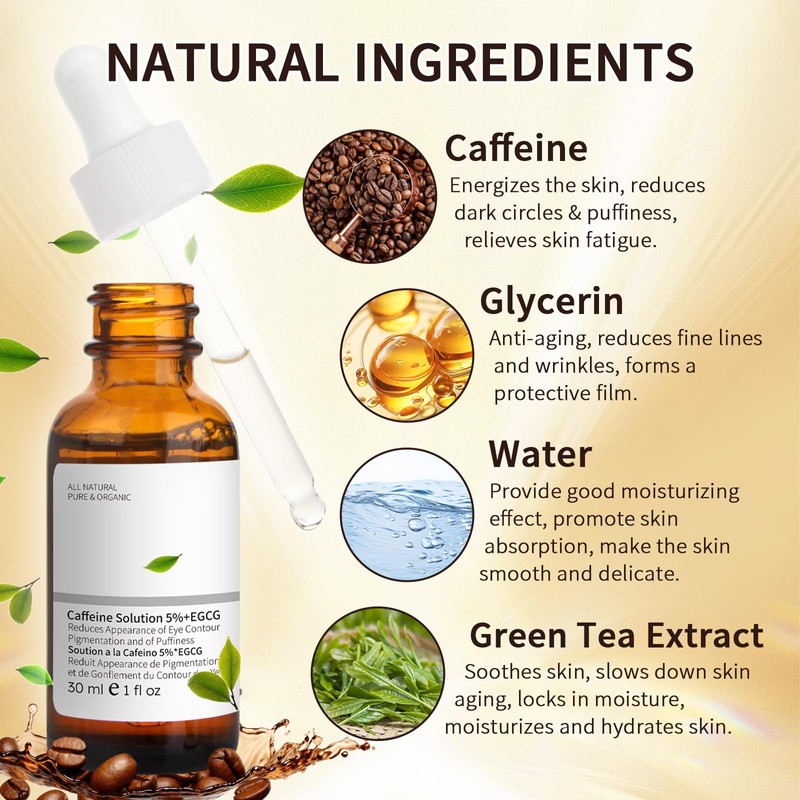 - CAFFEINE SOLUTION 5% + EGCG: Caffeine solution reduces puffiness and dark circles under your eyes, effectively minimizes the appearance of fine lines and wrinkles. Relieving eye fatigue and energizing the eyes