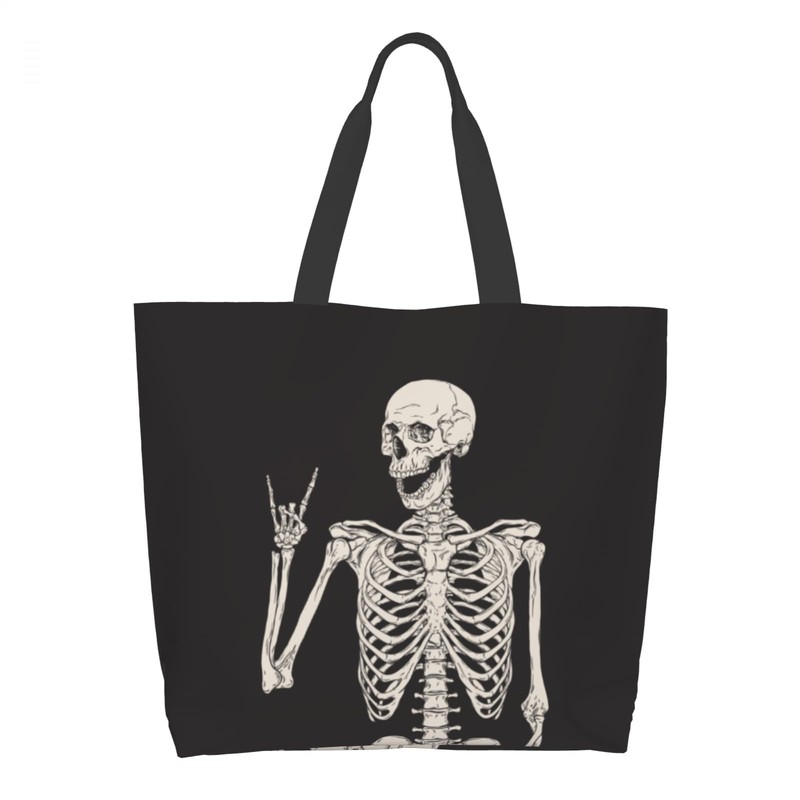 - ▲Extra Large Grocery Tote: Our Skeleton Posing tote bag Dimensions with 19.7 x 15.7 x 5.9 inch (W x H x D),carry handle is 8.2 inch,sturdy polyester shoulder strap, can be hand-carried or carried on one shoulder.