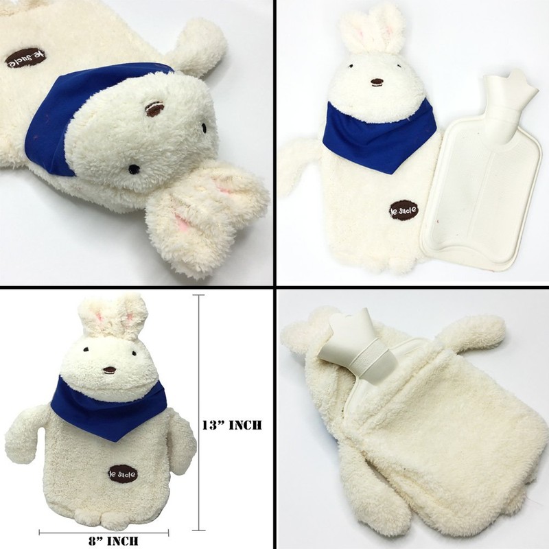 - Incluye 1 botella de agua caliente (blanca) + 1 funda de conejo de felpa (blanca)