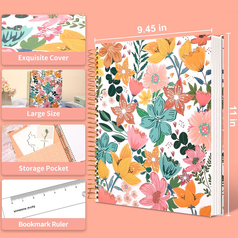 - CRAFTED IN DETAILS: Hardcover spiral notebook provides 200 ink-friendly pages for note taking. 9.45x 11 super large size, college ruled paper. You will have more sheets for longer usage. Thoughtful note book wrap-around design, holds up well to frequent transfers in and out of backpacks, briefcases, and cars. Pretty school, work and home partner!