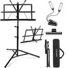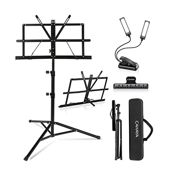CAHAYA Dual-Use Reinforced Folding Sheet Music Stand with Stand Light & Desktop Book Stand Lightweight Portable Adjustable with Carrying Bag Including Music Sheet Clip Holder