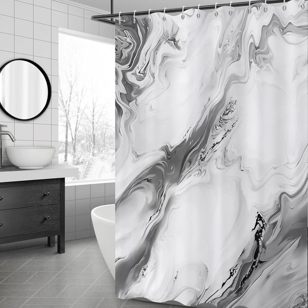 Caheansi Grey Marble Shower Curtain, Modern Abstract Grey Ombre Marble Art Bathroom Curtain for Home Decor Waterproof Fabric Machine Washable with Hooks, 72" Wx72 L