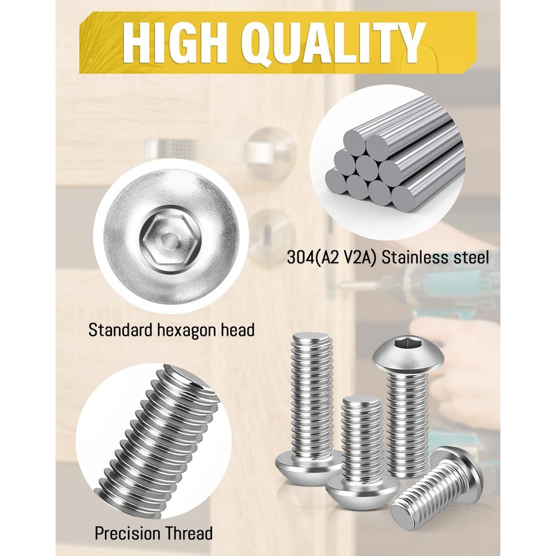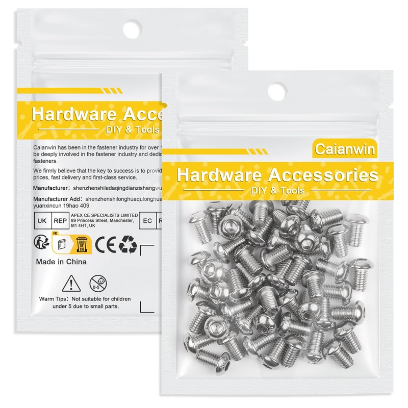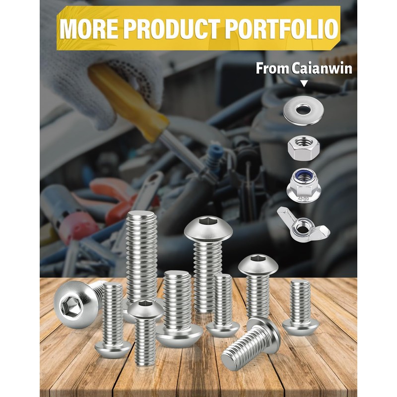 Caianwin M6 x 10mm Hex Socket Button Head Screws Fully Threaded 304 Stainless Steel Bolts