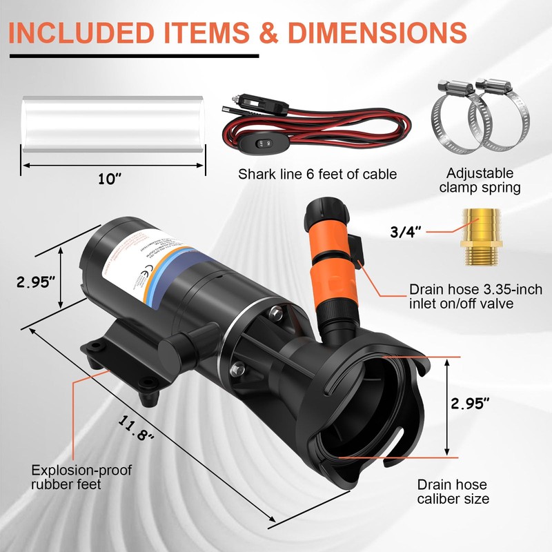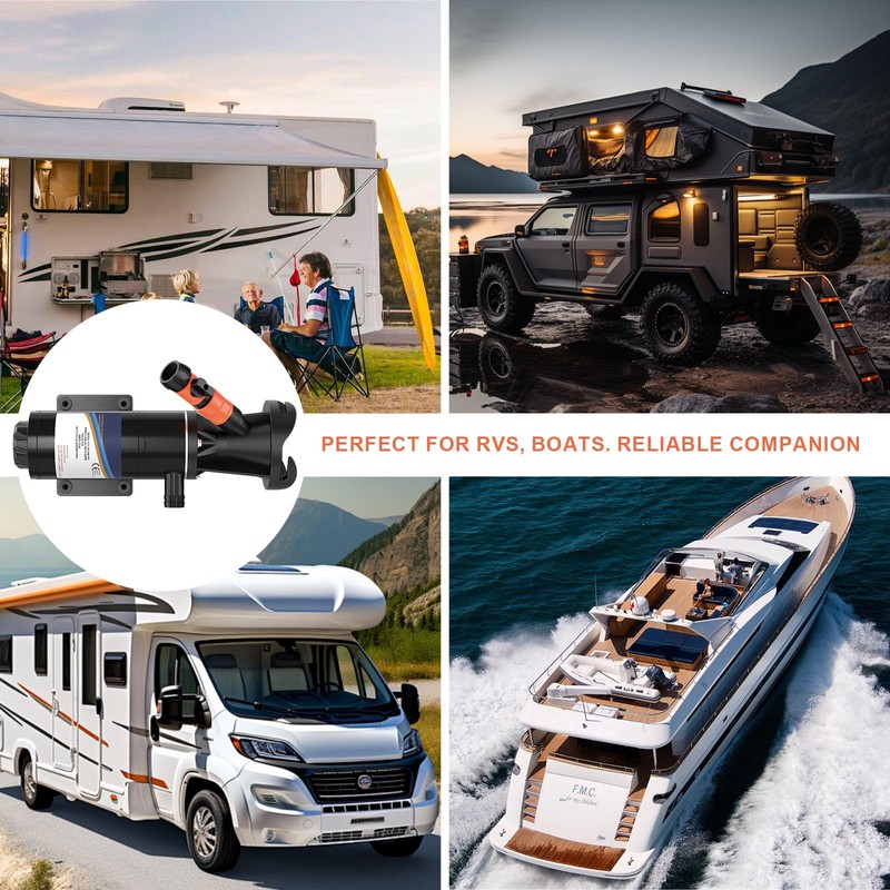 - High-pressure and Efficient Drainage: This high-power 12V RV macerator pump has a flow rate of 12 gallons per minute (45 LPM), a pressure setting of 15 PSI, and a head of 10 feet. The high-torque design ensures maximum flow without overheating, allowing the water tank to empty quickly, providing a clean and convenient travel experience for your RV wastewater system.