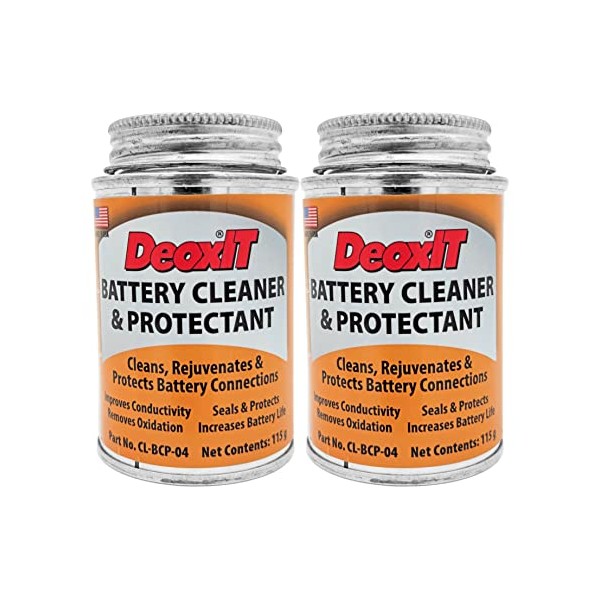 Caig DeoxIT Battery Cleaner & Protectant with Brush Lid, 4 oz brush can, 2-Pack