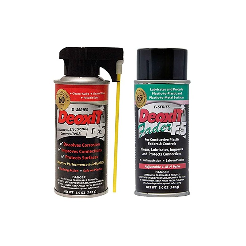 - Bring Old Systems Back to Life! 2 Pack of DeoxIT D5S6 Contact Cleaner and F5S-H6 Fader Lube by Caig Laboratories.