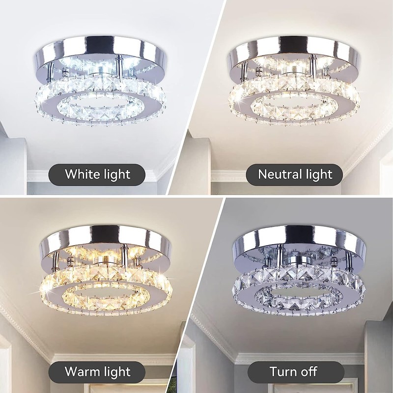 Cainjiazh Cainjiazh Mini Crystal Chandelier Crystal Flush Mount Ceiling Light Fixtures LED Round Mini Chandelier Light Fixture Ceiling Lamp for Kitchen Hallway Foyer (Dimmable)