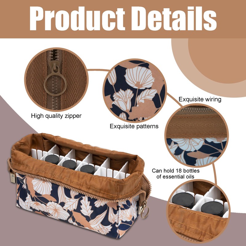 - Large capacity, portable, lightweight, waterproof, essential oil bag for purse, and stored in handbag, backpack, tote bag, or suitcase for convenient carrying