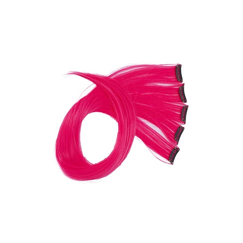 CAISHA by PRETTYSHOP BST118 5-Piece Set, 60 cm, Colourful Strands, Clip-In Extensions, Straight, Long Hair Hairpiece, Bright Pink