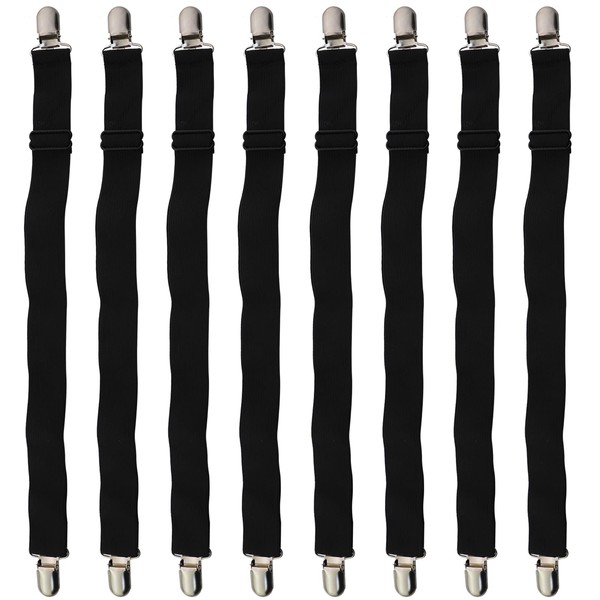Caishun 8PCS 14-25 Inch Black Sheet Holder Sheet Corner Strap Adjustable Heavy Duty Sheet Clip Holder for Sheet Mattress Cover Sofa Cushions