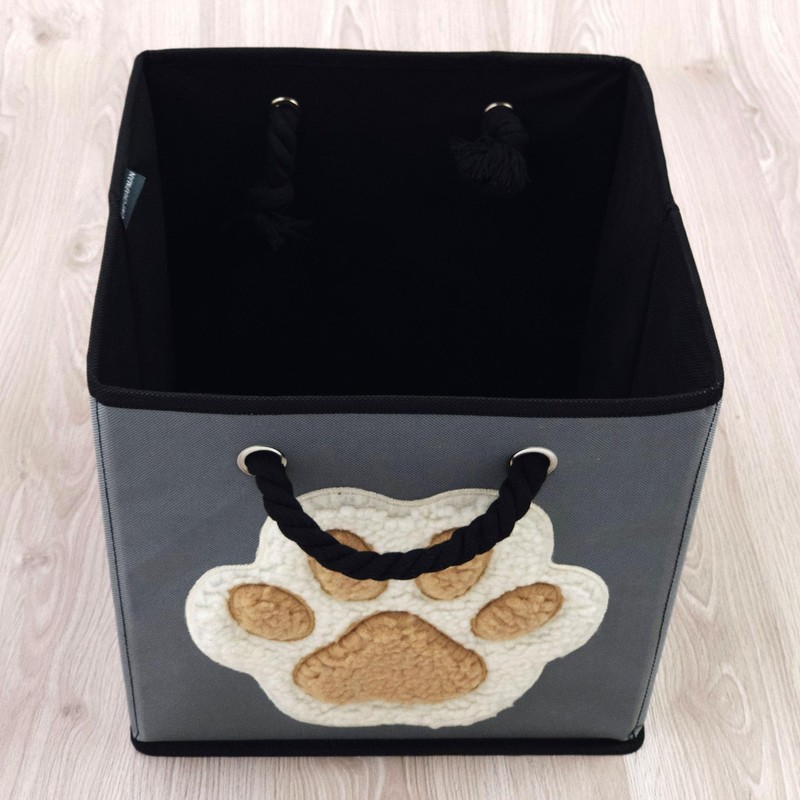 CAIT CHAPMAN HOME COLLECTION Collapsible Basket Storage Bin with Comfortable Handles Suitable for Storage of Dog Toys and Pets Accessories (Paw)