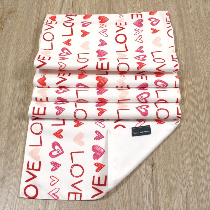 CAIT CHAPMAN HOME COLLECTION Valentine's Love Heart Printed Fabric Table Runner (13"x90" Runner)