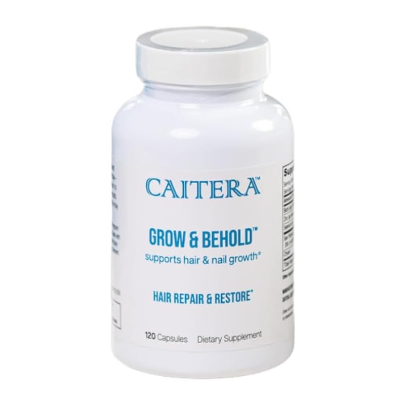 Caitera Grow & Behold | Clinically Tested Dietary Supplement for Thinning Hair | Saw Palmetto, Biotin, Zinc & Selenium to Support Hair Growth, Vitality, Shine & Fullness | Vegan 120 Capsules