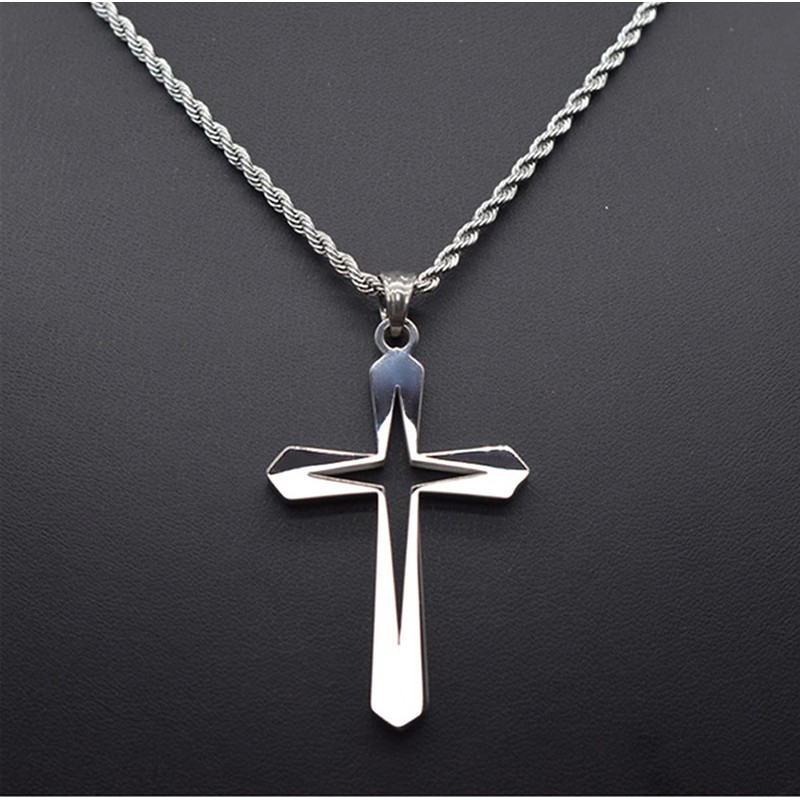 Caiyao Stainless Steel Hollow Star Cross Pendant Necklaces Hypoallergenic Hollow Cross Cool Silver Cross Charm Necklaces for Women Men Delicate Jewelry-C large size