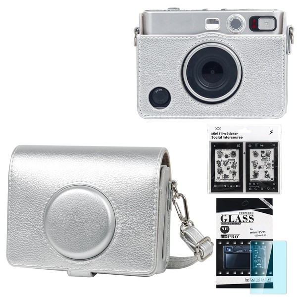 • √ Mini Evo Accessories: Specially designed for Fujifilm Instax mini evo Instant Camera. You' ll receive: Mini evo case x 1,Mini EVO screen protector x 1,Mini 3 Inch Film photo border sticker x 10.