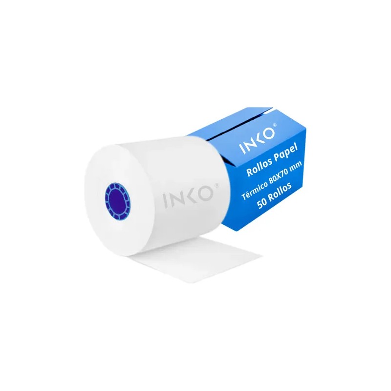 Caja 50 Rollos Papel Térmico INKO 80x70mm Alto Rendimiento Impresora 80mm Tickets Recibos compatible con EPSON BIXOLON