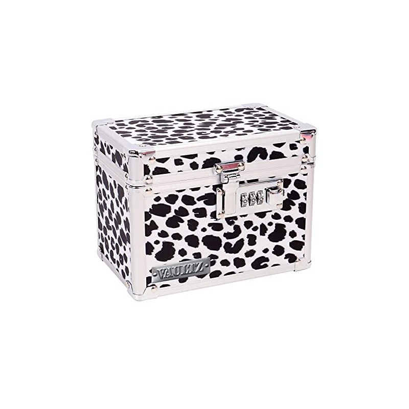 Caja de bloqueo de medicina con cerradura de combinación, 5 x 7 x 5 caja fuerte para gabinetes, leopardo blanco y negro