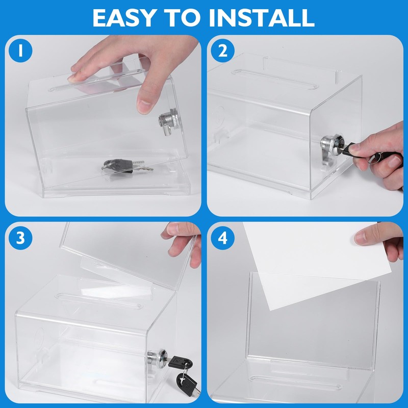 - MULTIUSOS: adecuado para usar como urna, caja de recaudación de fondos, caja de donación, urna de rifa, caja de sugerencias, caja de participación en concursos, caja de tarjetas y más.