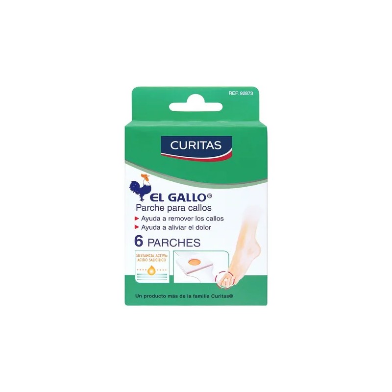 Los parches Curitas El Gallo proporcionan alivio inmediato del dolor causado por la fricción y presión, facilitando la eliminación de callos. Cuentan con un anillo central suave que acolchona la zona afectada, mientras que el ácido salicílico contribuye a suavizar el callo para su remoción.
