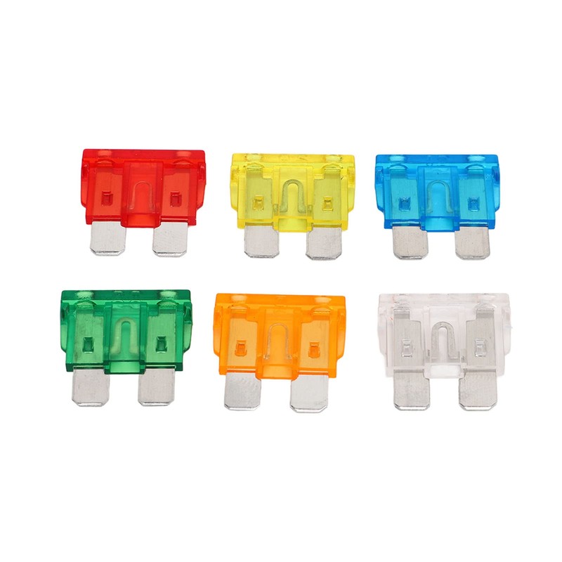 1. El paquete incluye: este paquete es un kit de relé de fusible de cuchilla a prueba de agua de 12 V, 6 para relé estilo , 11 ATC, fusible ATO y 52 terminales de crimpado.