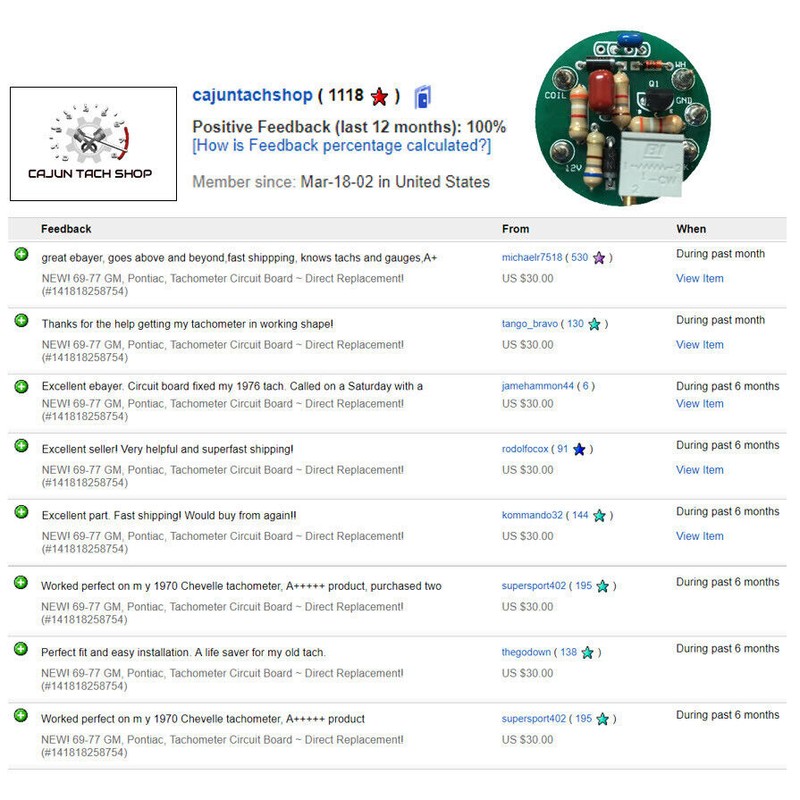 Cajun Tach Shop 1969-77 Camaro, 71-77 Vega, Chevelle, Tachometer Circuit Board. Easy Tach Repair