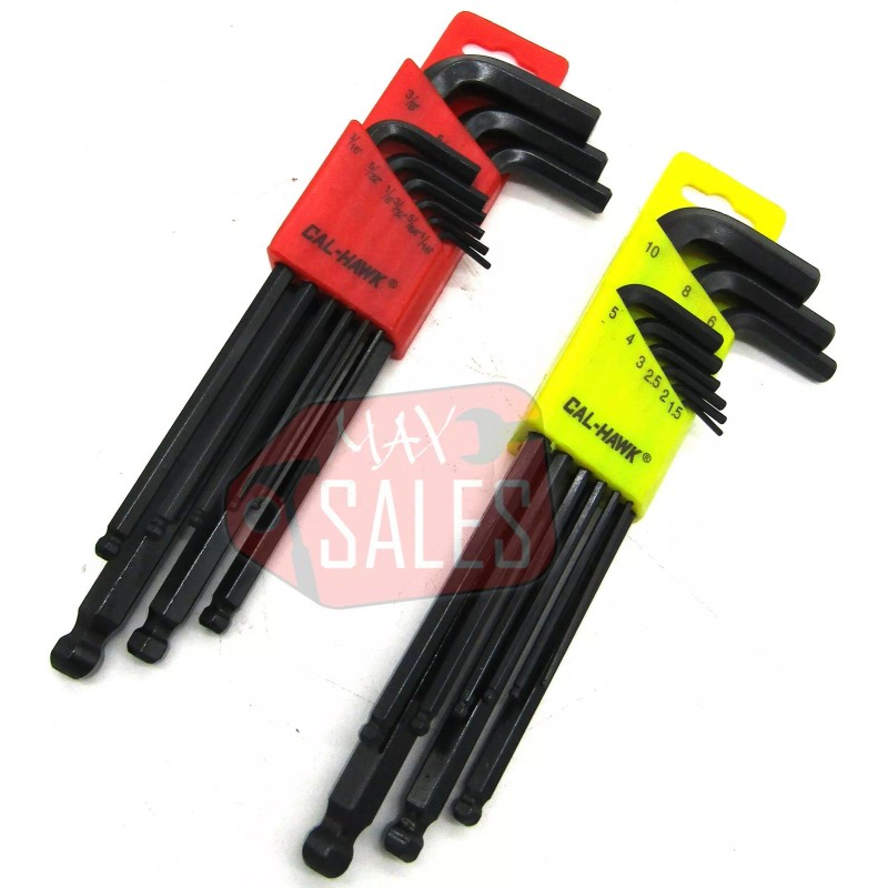 CAL 20pc ALLEN BALL POINT END LONG ARM HEX KEY WRENCH DRIVER SET SAE/METRIC