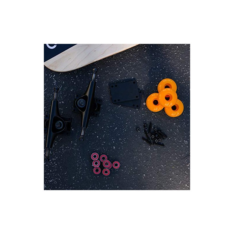 - SOLID SPECS — 129-millimeter (5-inch) aluminum trucks, 52 x 31mm 99A PU wheels, ABEC 7 bearings.