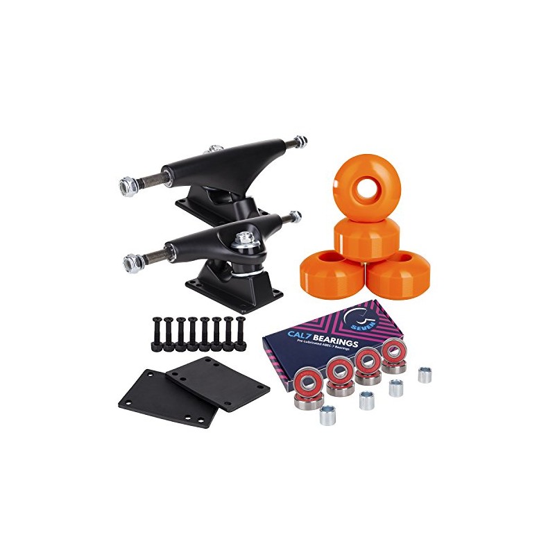 Cal 7 Skateboard Package Combo with 5 Inch / 129 Millimeter Trucks, 52mm 99A Wheels, Complete Set of Bearings and Steel Hardware (Black Truck + Orange Wheels)