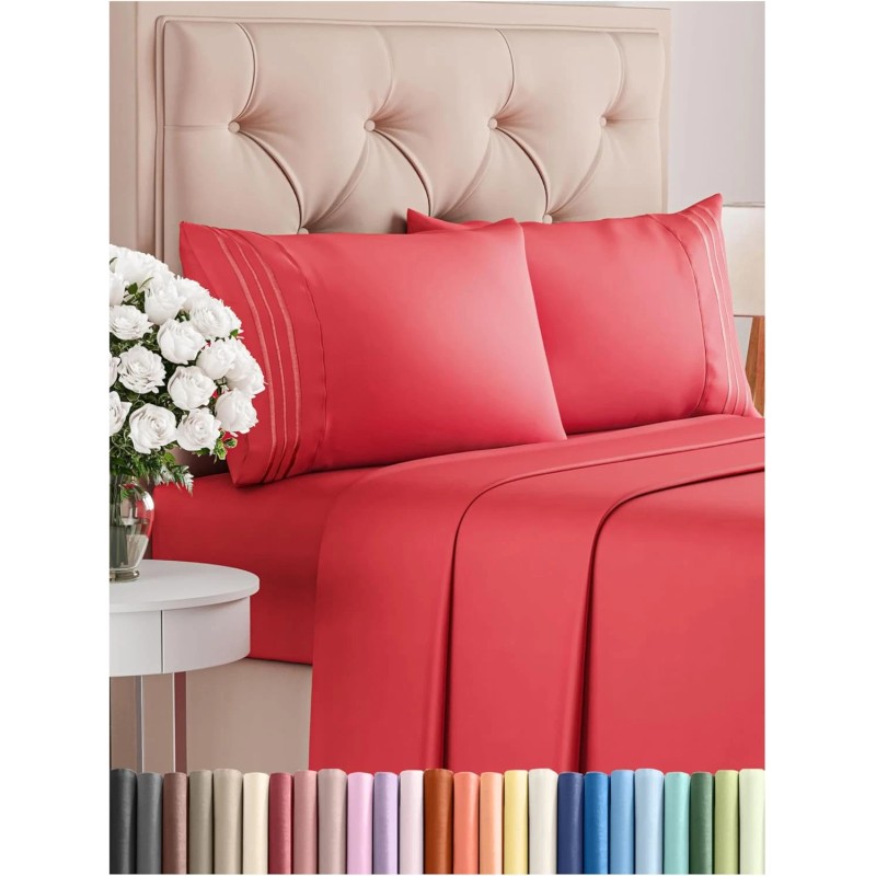 Cal King Size 4 Piece Sheet Set - Comfy Breathable & Cooling Bed Sheets Set - Hotel Luxury Bedding for Women, Men, Kids & Teens - Deep Pockets, Easy Secure Fit, Soft and Wrinkle Free - Oeko-Tex - Red