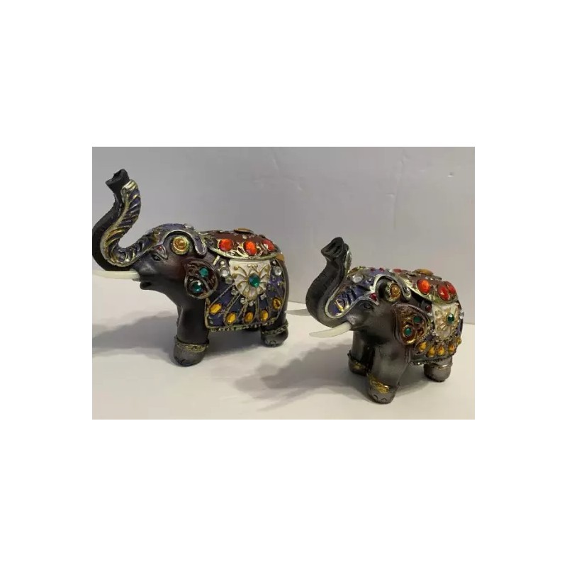 Cal Mart Gifts Feng Shui Set Of 2 Dark Gray Elephant Trunk Statue Lucky Figurine Home Decor