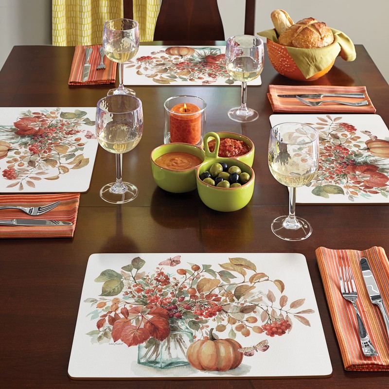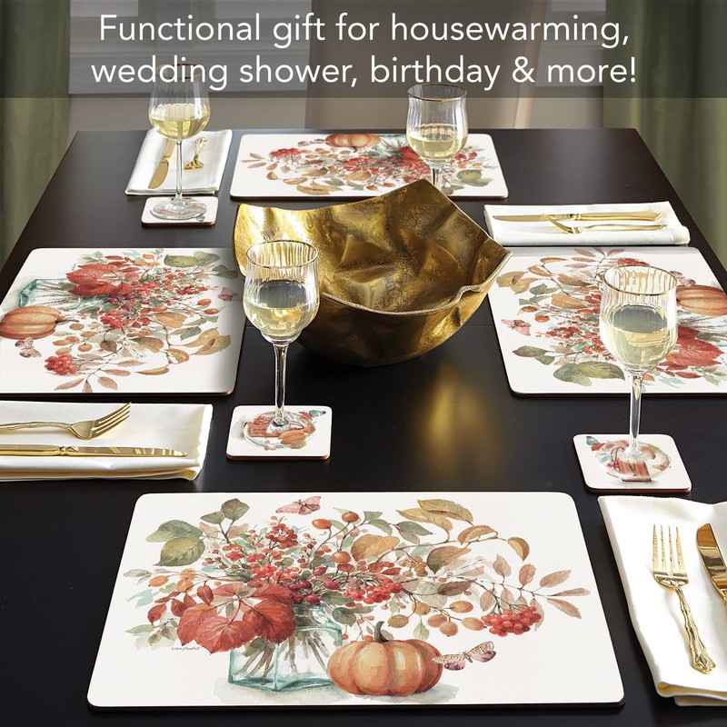 Cala Home Autumn in Nature Decorative Hardboard Cork Back Tabletop Placemats, Set of 4, Manufactured in The USA, Heat Tolerant and Easily Wipes Clean