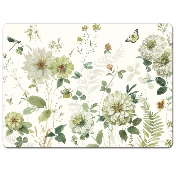 Cala Home Green Fields Premium Decorative Hardboard Cork Back Tabletop Placemats 4 Pack Manufactured in The USA Heat Tolerant and Easily Wipes Clean