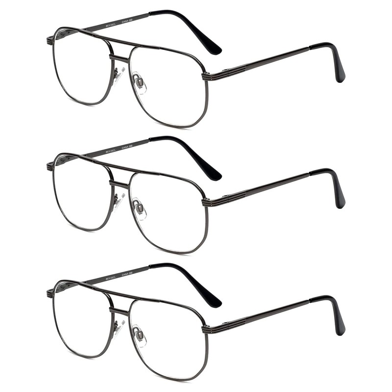 Calabria 1106 Pilot Reading Glasses +1.00 Gun metal (3pack) Mens Designer One