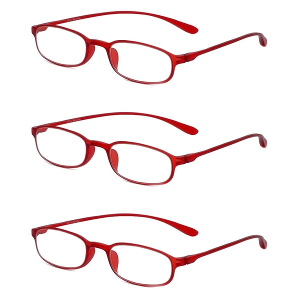 Calabria 718 Flexie Oval Reading Glasses +1.25 Red (3pack) Men/Women Bendable Readers Flexible Durable TR90 Frame