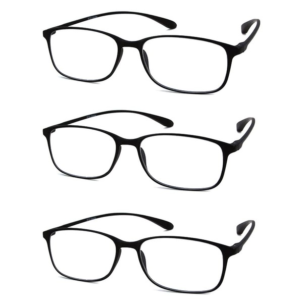 Calabria 720 Flexie Square Reading Glasses +2.75 Ebony (3pack) Men/Women Bendable Single Power Reader Flexible TR90 Frame