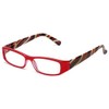 Calabria Eyewear’s Model 734 is a stylish ladies reading glass with. Featuring a striking translucent solid color front and a vivid “Pucci” striped pattern temple. The Temple pattern is both on the inside and outside of the temple. Expertly crafted lightweight polycarbonate frame with spring loaded temple hinges for the ultimate in comfort and durability. The optically correct, distortion free aspheric lenses provide outstanding clarity. These wonderful reading glasses features a matching protective case, that doubles as a cleaning cloth. The unique European style designed for the vibrant, fashion forward woman who wishes to make a statement without spending a fortune. Get the look of a Designer Eyeglass frame in an inexpensive reading glass. There are 4 different color options.