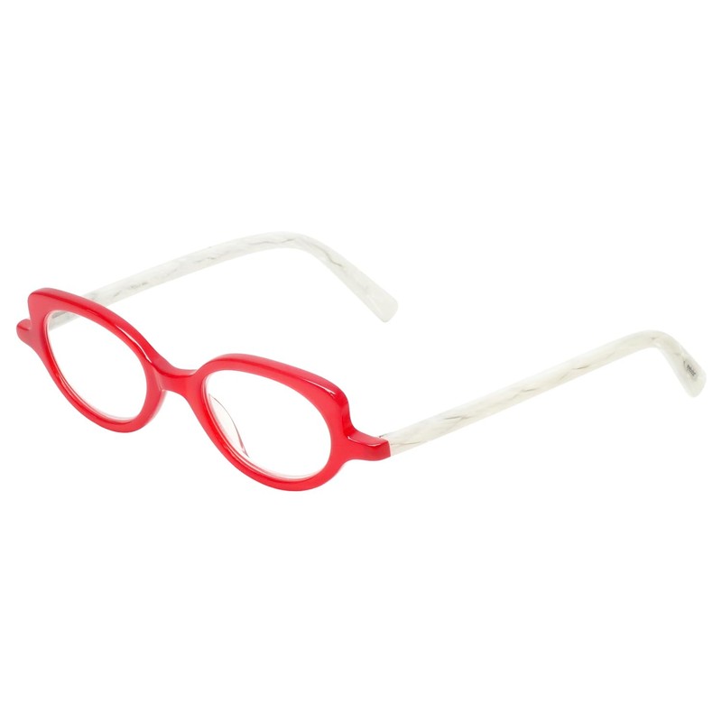 Calabria EB Peep Show Cat-Eye Blue Light Blocking Reading Glasses +2.50 Red Crystal White Marble Women