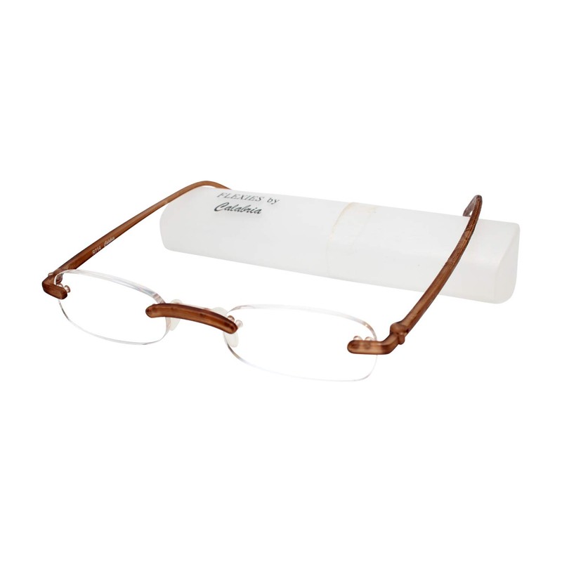 Calabria Flexie Low Profile 714 Reading Glasses&Slim Case+1.00 Root Beer Brown