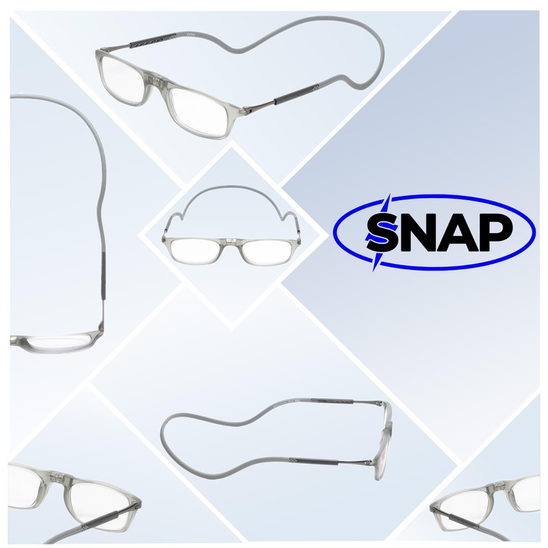 Calabria SP03 Snap Magnetic Reading Glasses +4.00 Crystal Grey Front Connect Adjustable Temples Around Neck Hanging Readers