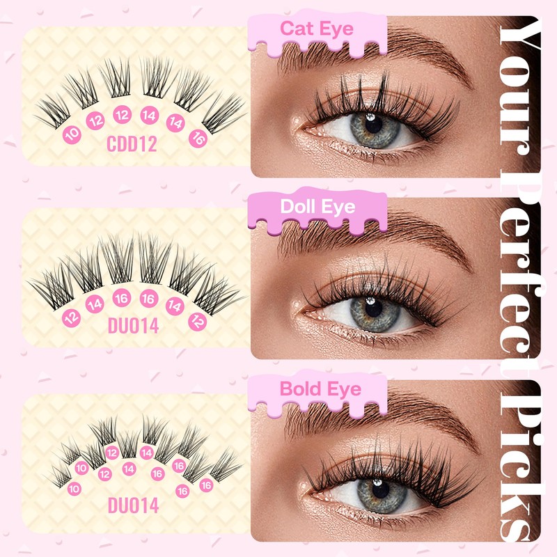 • 【Infinite Lash Beauty Possibilities】 Dive into the world of endless eyelash styles with our perfect D curl DIY eyelash extensions offering 4-mixed lengths. From doll eye to cat eye, wispy eye to bold look, let your creativity soar as you craft the perfect eye-catching expression to match your mood or outfit.