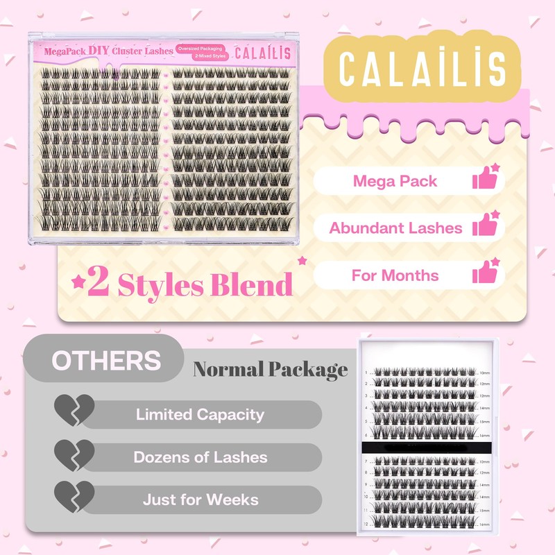 CALAILIS Lash Clusters DIY Eyelash Extensions 276pcs Oversized Packaging Natu...