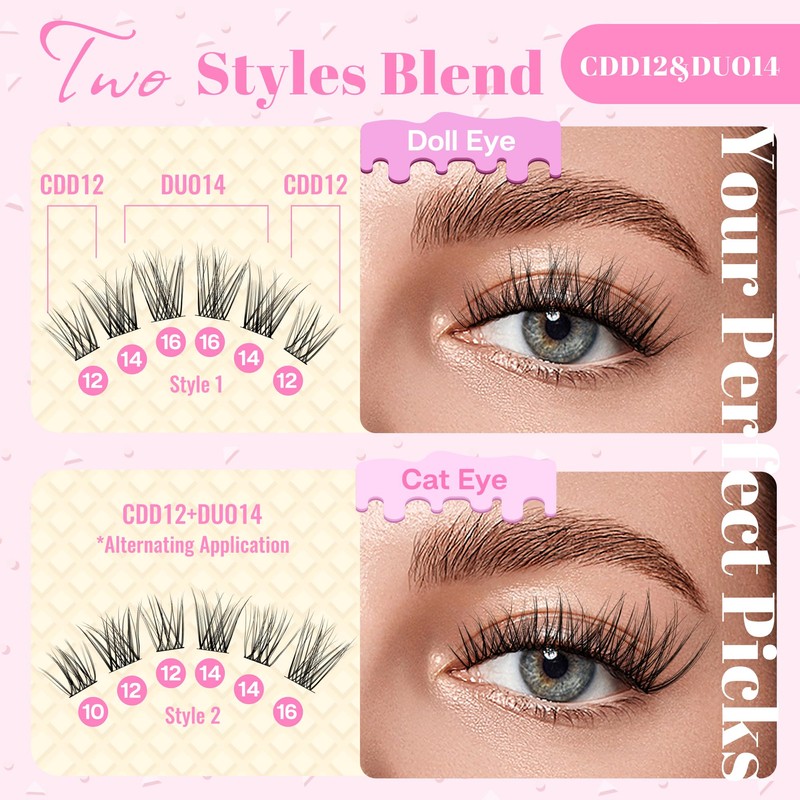 • 【Unrivaled Comfort, Natural Look】 Designed with the utmost precision, the CALAILIS style cluster lashes feature a 0.3mm super-thin and flat lash band, tapered lash tips, and super-soft fibers, offering unparalleled comfort and effortless feel. They blend seamlessly with your natural lashes, giving the effect of real, mesmerizing eyelashes.