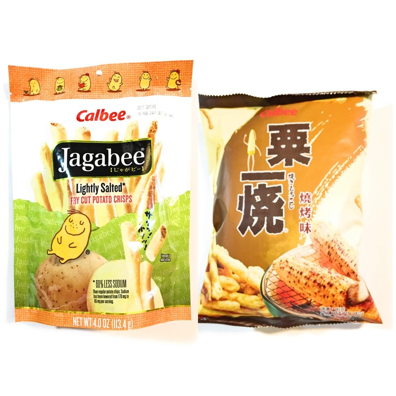 Calbee Lightly Salted Fry Cut Potato Crisps 4 Oz And Calbee Grill-A-Corn (Barbecue Flavoured)80g