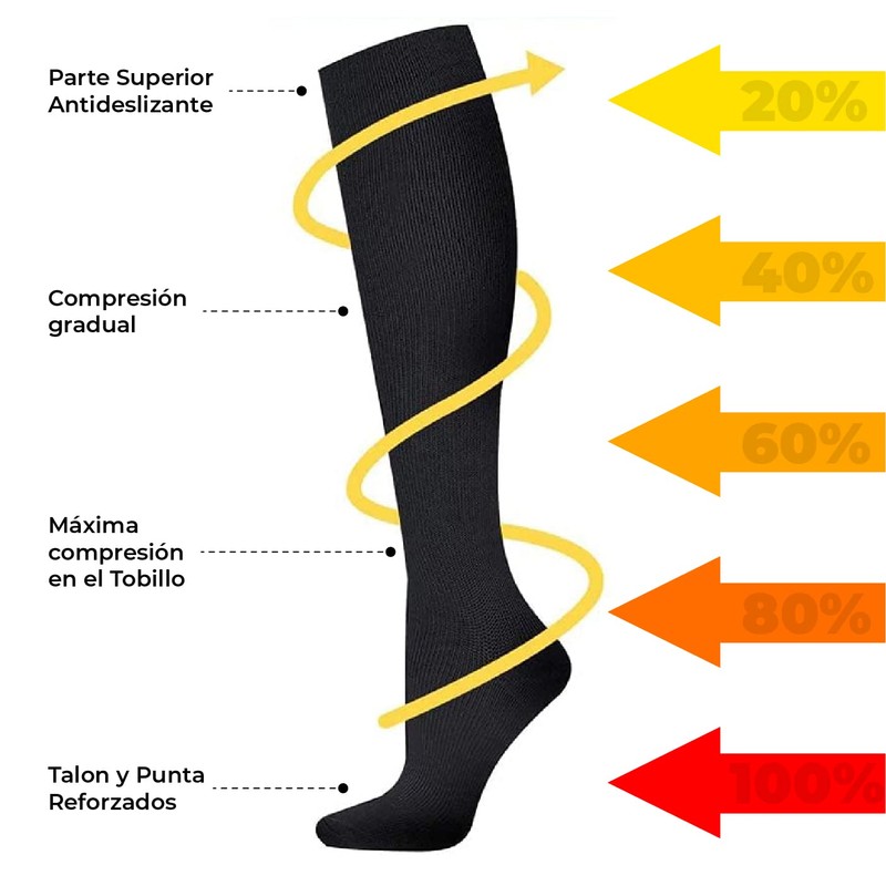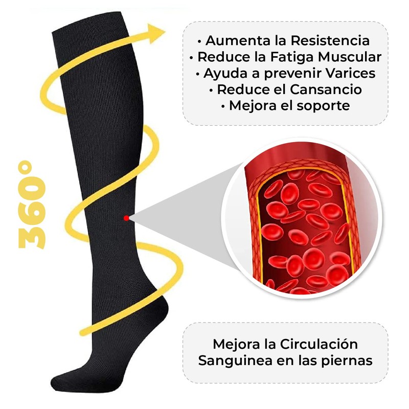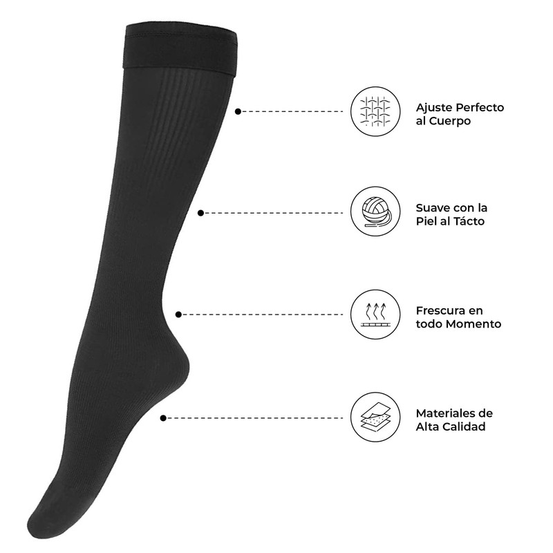 • Estos Calcetines de compresión médica son adecuados para personas con problemas de circulación. Nuestras medias de compresión están diseñadas para promover la circulación sanguínea y el flujo de oxígeno, prevenir calambres, fatiga, hinchazón y ayudar en la recuperación muscular.