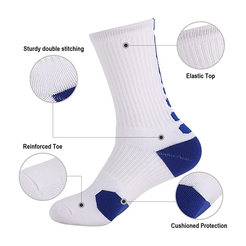 - Características: estos calcetines de equipo atlético con humectación, manejo de humectación de fibras y canales de ventilación de circulación de aire. Perfectos calcetines de compañero para baloncesto, fútbol, fútbol americano. estos calcetines son adecuados para la talla de zapatos de nosotros, para hombres 6-12 y para mujeres 7-13 ya que estos calcetines son calcetines deportivos de compresión, por lo que la talla es un poco ajustada, es normal.