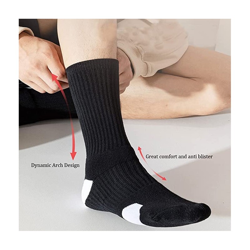 - MATERIAL PREMIUM: 75% poliéster algodón, 15% poliéster y 10% spandex, la proporción de composición perfecta para calcetines deportivos, lo suficientemente suave, altamente elástica y cómoda. También proporciona transpirable superior y absorber la función del sudor para satisfacer la demanda de hacer ejercicio. Partes reforzadas de los dedos y talones para asegurar una buena resistencia al desgaste; No se deteridespués del lavado de la máquina.