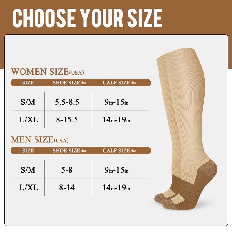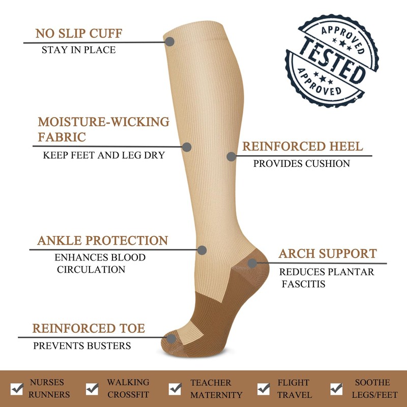 Calcetines de compresión de cobre para hombres y mujeres, mejor apoyo para enfermeras, correr, ciclismo médico